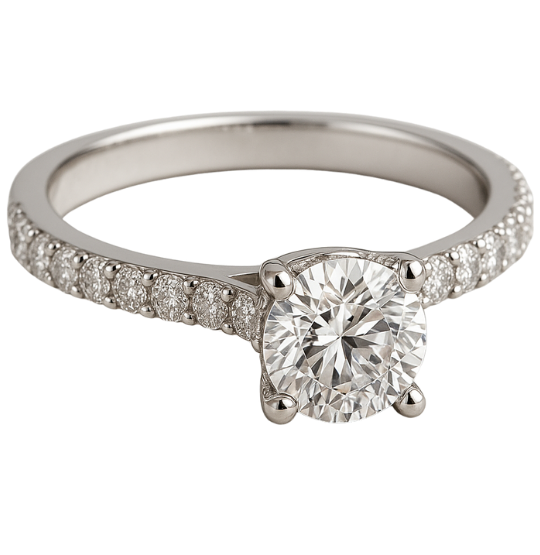 Işıltıyı ikiye katlayan Elegance Pave, merkezdeki 0.70 karat F renk pırlantayı gövde üzerine işlenmiş mikro pavé yan taşlarla vurgular. Bu tasarım, tektaşın klasik duruşunu korurken el hareketlerinde kesintisiz bir parlaklık şeridi sunar. Hafif inceltilmiş shank formu, yüzüğe feminen bir dokunuş katarken taşın olduğundan büyük görünmesine yardımcı olur.